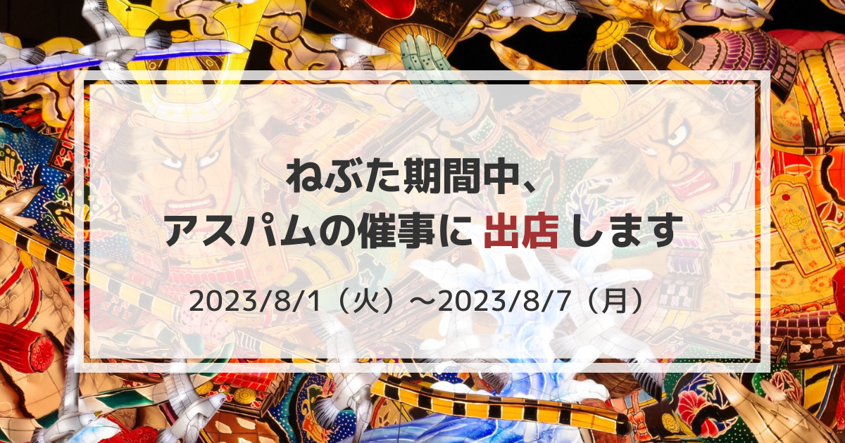 ねぶた期間中、アスパムの催事に出店します(2023/8/1〜2023/8/7)