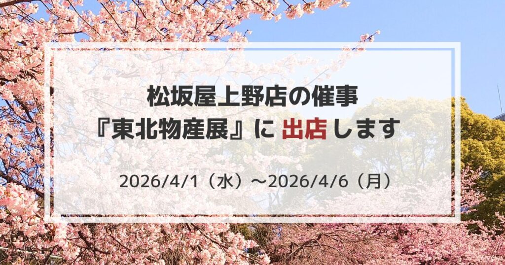 東京・上野の桜が見頃を迎える時期に合わせ、松坂屋上野店にて開催される「東北物産展」に出店いたします。