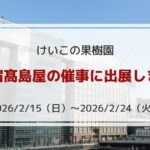 2026/02/11 / 最終更新日時 : 2026/02/11 keiko-kajuen 物産展情報 新宿髙島屋の催事に出店します(2026/2/15〜2026/2/24) こんにちは、けいこの果樹園の「けいこの娘」です。 青森の猛烈な大雪、ようやく一段落…?❄️ 除雪車のおかげで道路の雪は消えましたが、 庭や畑、道路の脇にはまだまだ「雪の壁」がそびえ立っています […]